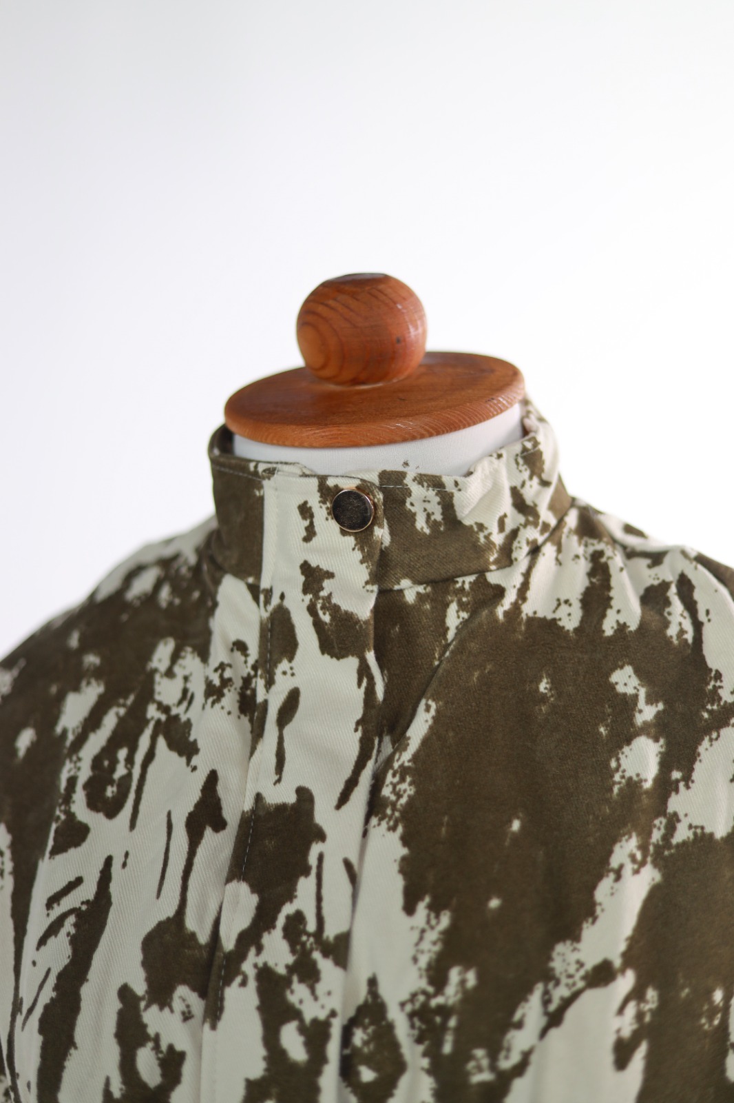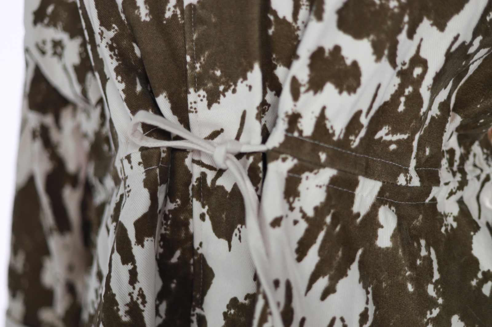 Veste imprimée vert olive avec une ceinture pour ajuster la taille.
